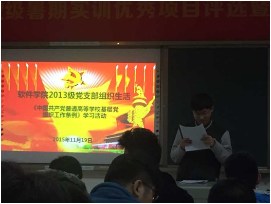 304永利集团本科生2013级党支部于2015年11月19日在公司108教室集中学习《中国共产党普通高等公司基层组织工作条例》及《统筹推进世界一流大学和一流团队建设总体方案》。组织生活会由党支部组织委员李奕润同学主持。