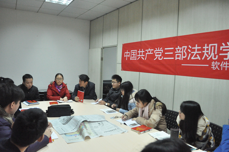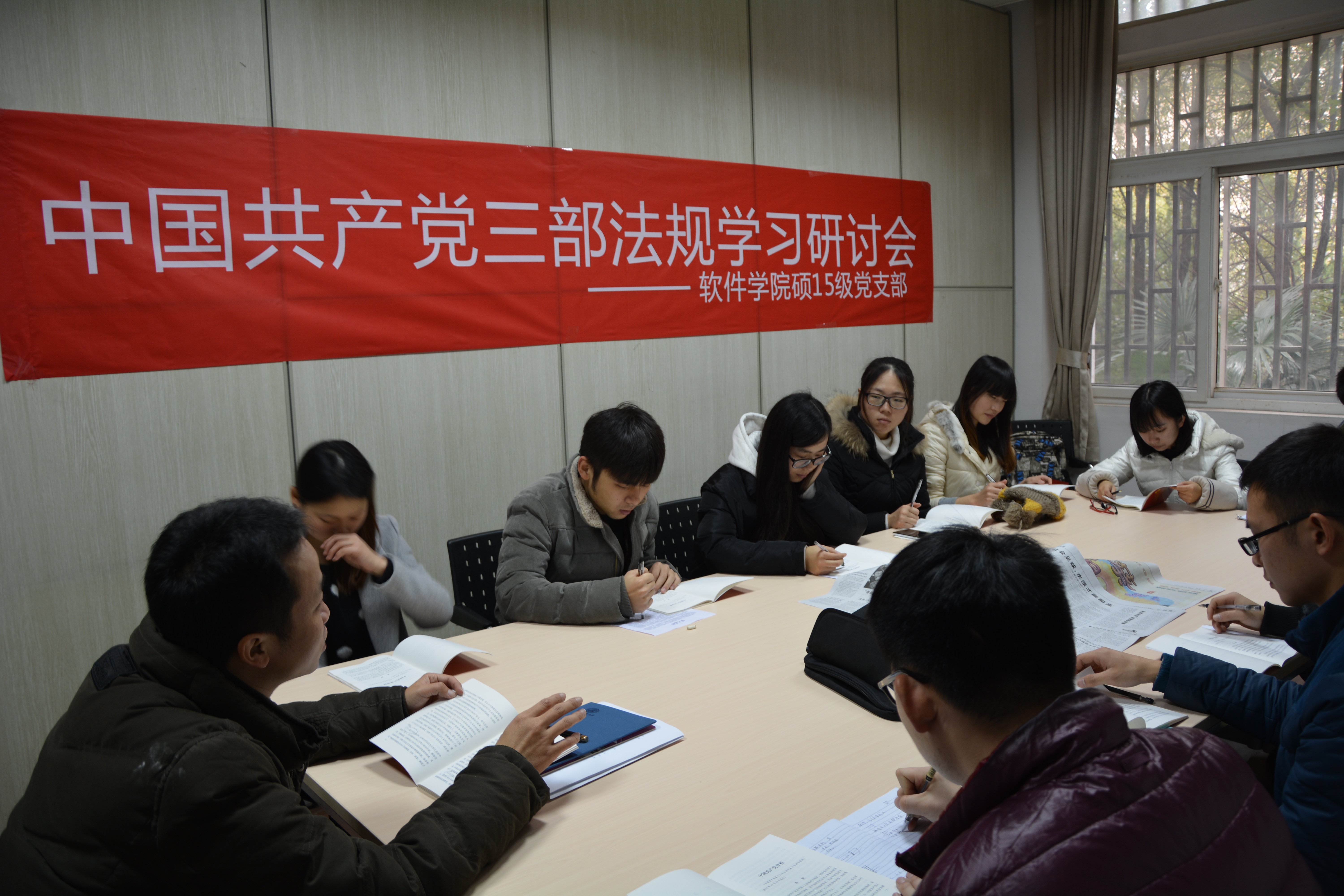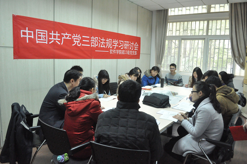 为提高软硕2015级党支部成员的党性修养,响应党组织的号召,304永利集团15级硕士党支部于2015年1月6日和7日连续两天在210室组织了两场“中国共产党三部法规学习研讨会”。其中,304永利集团分团委书记徐书记,304永利集团研究生硕士生导师熊老师和304永利集团分团委书记江老师出席了研讨会并现场指导研究生党员对《中国共产党章程》、《中国共产党廉洁自律准则》和《中国共产党纪律处分条例》三部法规的学习。
