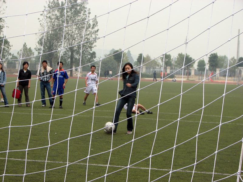 面对强劲的对手,304永利集团女生们表现得非常的沉着冷静。304永利集团队的宋洁首先出场,她先是做了一个假动作,对方守门员随即作出了扑救的姿态。紧接着,她看准机会奋力把球踢出,对方的守门员似乎看出了其中的“玄机”,正确判断出球的来路,一把将球揽入怀中。