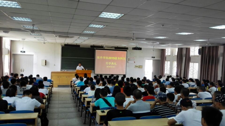 2015年9月6日,2015级全体本科生在东十二F101教室举行了开学典礼,会议由学工组长、2015级新生辅导员牛慧娟老师主持,公司党总支书记徐进老师、经理陈传波教授、副经理肖来元教授、副经理沈刚教授以及教师班主任,教务办公室主任和全体学工组老师参加了开学典礼。