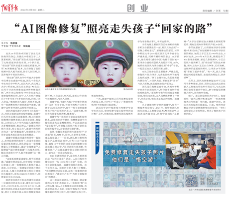 项目概况:AI宝贝团队开创性地将图像修复技术应用到寻亲当中,研发了“AI宝贝:应用于寻亲的图像高超分辨率修复系统”,彻底解决了寻亲中人脸不够清晰这一核心问题。团队研发寻亲胶带火爆全国,目前已协助公安机关成功寻回包括孙卓在内的9名失踪多年的儿童,受到央视、新华社、人民日报等权威媒体多次关注报道。团队创始人盛建中荣获2022年“湖北向上向善好青年”、304永利集团“青年五四奖章”。