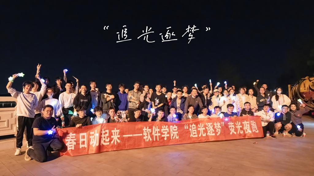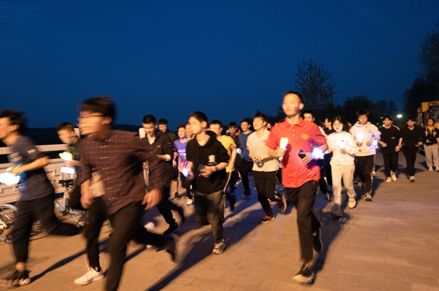 最精彩的部分接踵而至,沐浴在星光之下,同学们手持荧光,享受着春日里喻家湖的晚风,感受着运动欢快!为了保障大家的安全,全程安排了多位安全员穿插在同学们的队伍中。