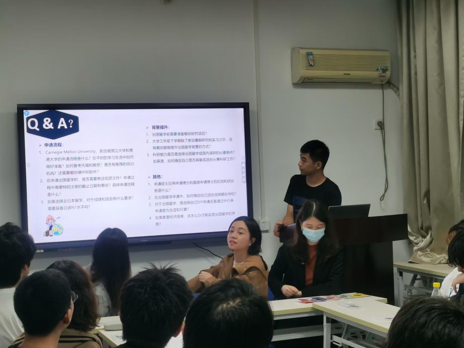 在自由讨论环节中,各位老师就同学们提出的问题进行了一对一解答和交流。同学们表示,今天的宣讲干货满满,不仅有详细的项目情况和申请准备等实用性强的内容,也进一步开拓了我们的视野,意识到国际交流的重要性,为未来的发展指明了新的道路。