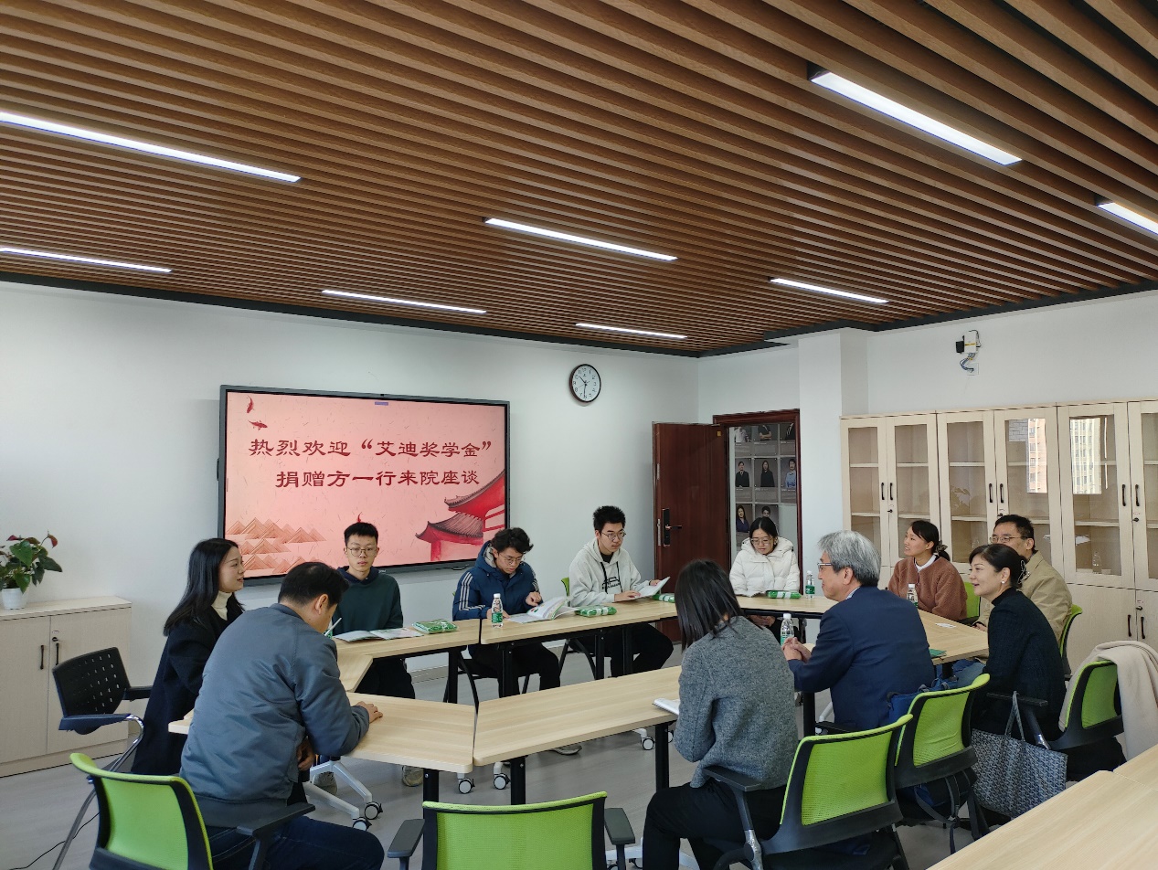 11月24日上午,“日本艾迪奖学金”座谈会在恩明楼1016会议室举办。艾迪系统开发(武汉)有限公司董事长玉越俊哉、总经理苑兆凤、管理部长朱艳霞,公司党委副书记徐洁、副经理沈刚、外事专员张欣以及本年度获奖员工代表参加。座谈会由辅导员马冰茜主持。