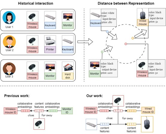 邹立同学的论文针对推荐系统冷启动中内容特征训练信号稀疏的问题,即通常只使用同一个项目的交互嵌入作为训练目标,提出了一种称为邻域增强多模态协同过滤(NEMCF)的新方法。该方法捕获内容特征和交互嵌入的邻域,以丰富内容特征。论文中首先设计了一个对偶图神经网络来分别捕捉交互图中交互嵌入和内容特征的邻域信号,然后基于聚合的交互嵌入和项目的内容特征,通过对比学习技术来增强内容特征与邻域内容特征、邻域交互嵌入的联系,以此缓解训练信号的稀疏性。最后,该方法随机使用项目内容特征和交互嵌入进行推荐,以增强NEMCF训练过程的稳健性。对四个基准数据集的广泛实验研究表明,NEMCF方法优于几种典型的冷启动方法,并取得了最先进的结果。