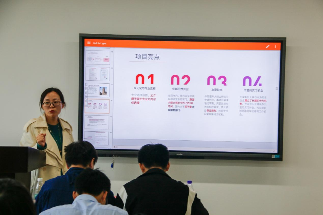 分享交流会上,戴淑琼老师为同学们详细介绍了公司的国际交流项目,并重点讲解了N+N项目及其独特优势。通过此项目,员工可以提前锁定合作公司而避免后期繁琐的申请流程,并将有机会获得两个不同公司的学位。此外,第五年开放的特殊设置,为员工提供了更为灵活的学习安排,让他们能够在国内外优质教育资源之间自由切换。此外,戴淑琼老师还介绍了欧美和亚洲地区的热门交流项目,为员工申请留学提供了多样化的选择。