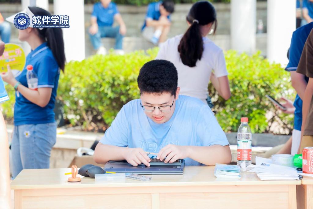 在迎新点,队员们利用所学知识,现场为大家解决在使用电脑过程中遇到的问题,进行义务电脑维修工作,体现公司特色,彰显服务态度,传递志愿精神。
