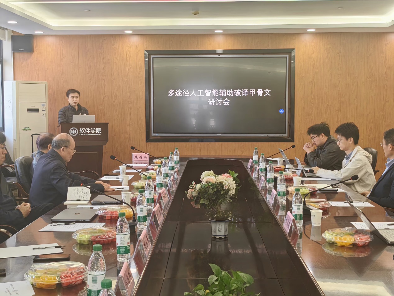 刘禹良教授介绍了团队利用人工智能辅助甲骨文考释的最新进展,提出通过形、音、意、理等维度破解甲骨文的路径,强调了AI技术在文本语义解析和字形辨识上的重要性,并与专家们探讨了跨领域合作的实际需求。