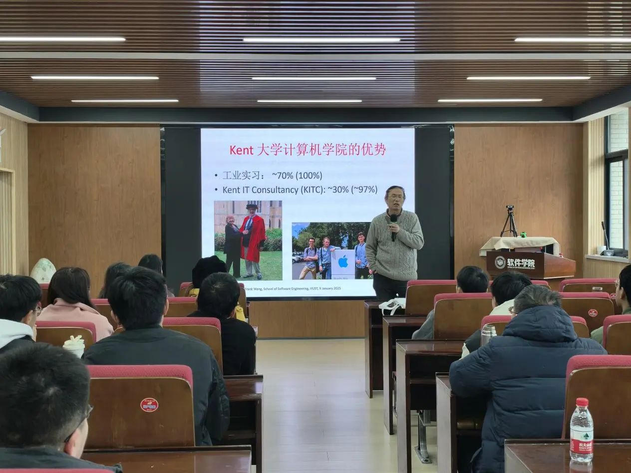 王智刚教授首先介绍了英国Kent大学,并对Kent大学计算机公司的发展历程、核心优势以及当前中英大学合作模式和实践进行了分享。