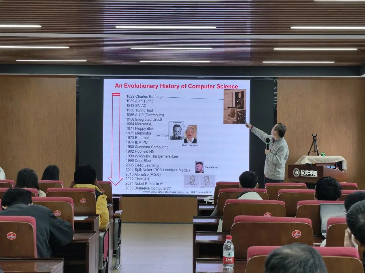 最后,王智刚教授带领大家回顾了计算机发展历程中的关键节点与重要人物。他提到,从世界上第一台计算机的诞生,标志着人类正式迈入计算机时代,这一里程碑事件为后续的科技发展奠定了坚实基础。随后,被誉为“计算机之父”的阿兰·图灵以其卓越的理论贡献与实践探索,为计算机科学的发展铺设了道路。进入互联网时代,蒂姆·伯纳斯·李作为万维网的发明者,他不仅极大地促进了信息的自由流通,更深刻改变了人们的生活与工作方式……这些关键节点与重要人物,共同构成了计算机发展的辉煌篇章,展现了科技如何一步步塑造现代生活。王智刚教授的讲解,不仅回顾了历史,更激发了我们对未来科技发展的无限遐想。