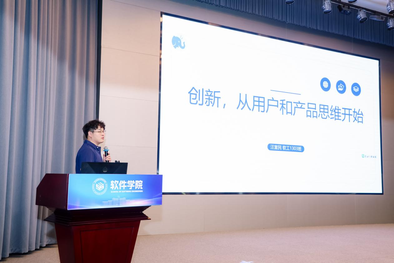 见微智助联合创始人、2013级本科员工汪宣民以《创业,从用户和产品思维出发》为题,分享了从校园学子到科技创业者的故事。