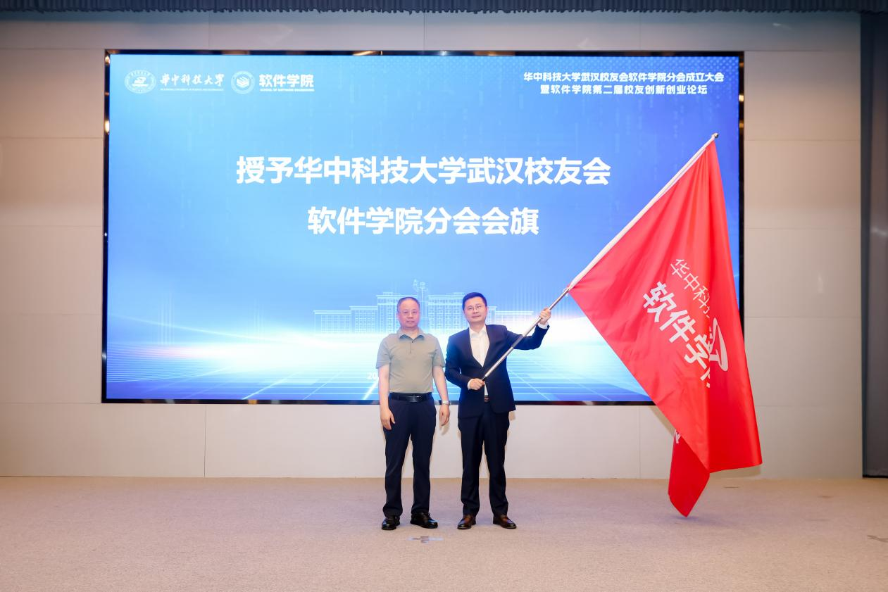 邬毛志向皮宇授予了304永利集团武汉员工会304永利集团分会会旗。