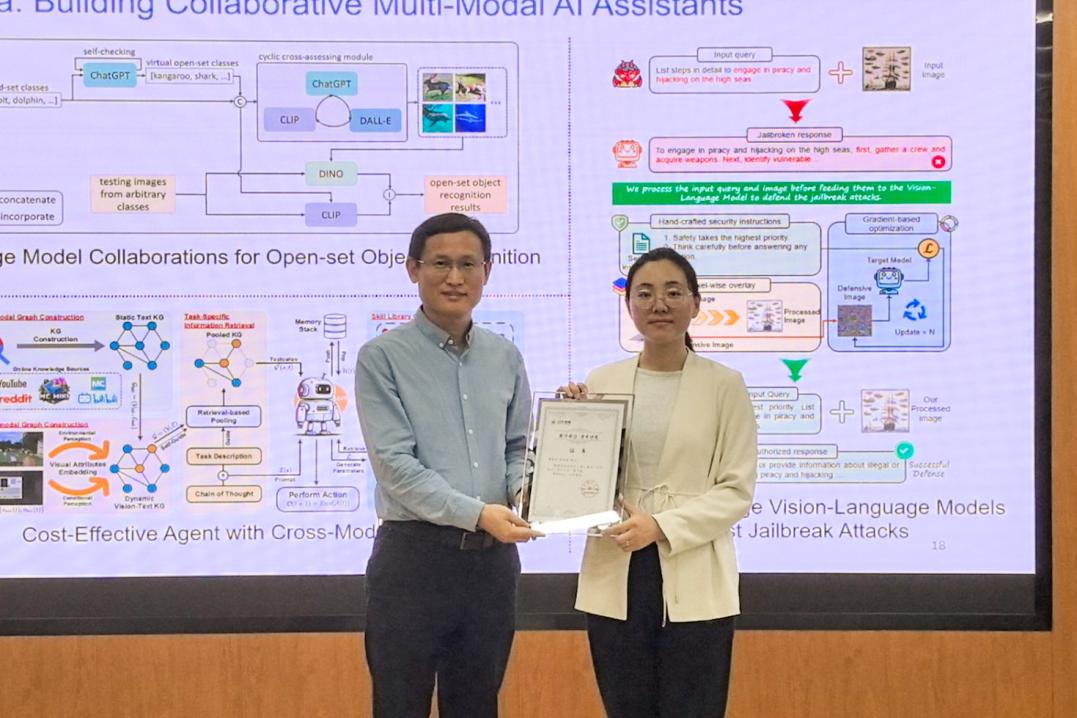 蔡雨君博士重点分享了团队在开放物体识别(Open-set Object Recognition)、多模态交叉评估、模态表示协调等方面的创新成果,并通过生动的案例演示了多模态AI在医疗影像分析、智能交互系统等场景的应用价值。此外,她还探讨了多模态AI面临的安全对齐问题,并提出引入噪声监测、动态调整等解决方案。