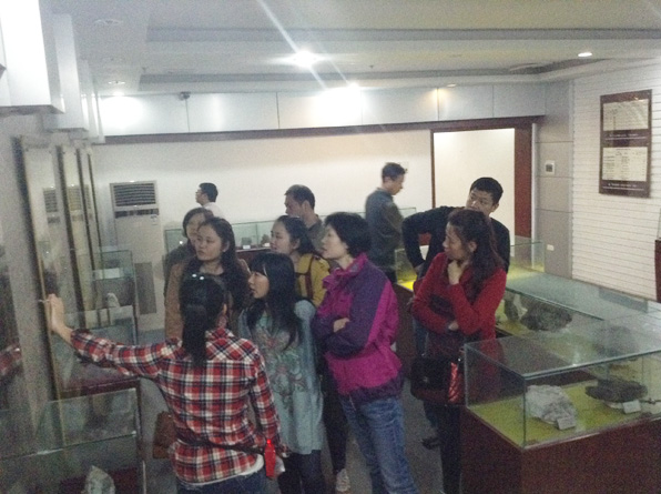 随后,我们参观了黄石矿山博物馆,该馆在地质矿床室陈列了大冶铁矿矿床发掘的各类矿石、岩石标本和化石,具有重要的地质矿床科研和教学价值;在党和国家领导人与冶矿陈列室,用珍贵的图片资料和实物,再现了毛泽东、董必武等党和国家领导人到大冶铁矿视察的情景;在近代开采陈列室,全面的展出了亚洲最大最早钢铁联合企业——汉冶萍公司历史照片及图表和实物,浓缩了中国近代“洋务运动”和钢铁工业曲折的发展史;在日本对冶矿资源掠夺的陈列室,用详实的历史资料和实物,反映和见证了日本对大冶铁矿的侵略和掠夺,提醒我们要铭记历史,奋发图强!