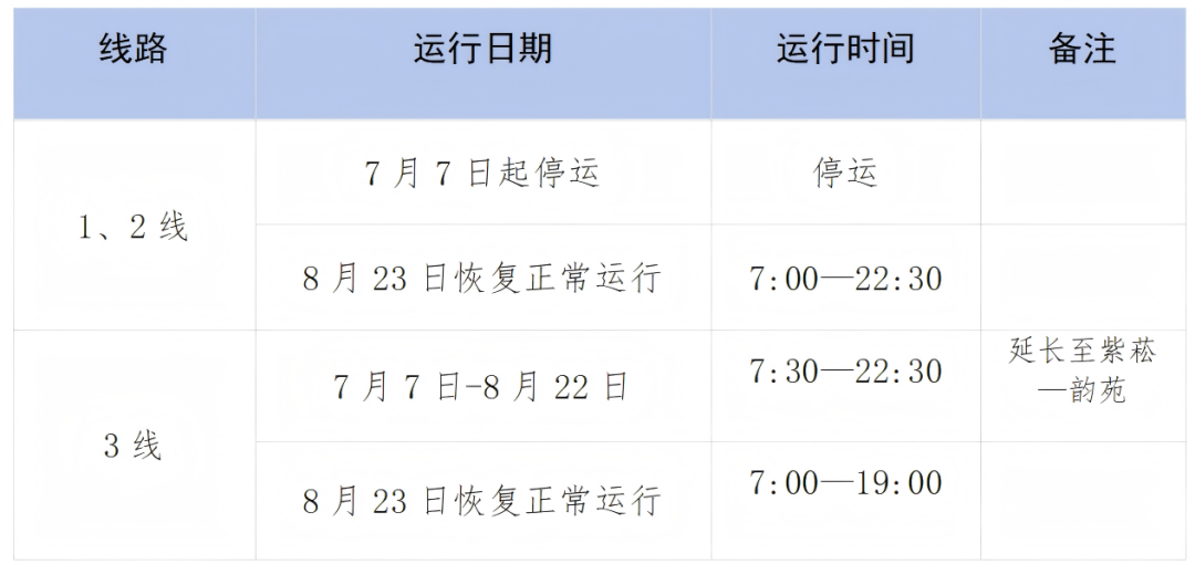 暑期运行线路调整