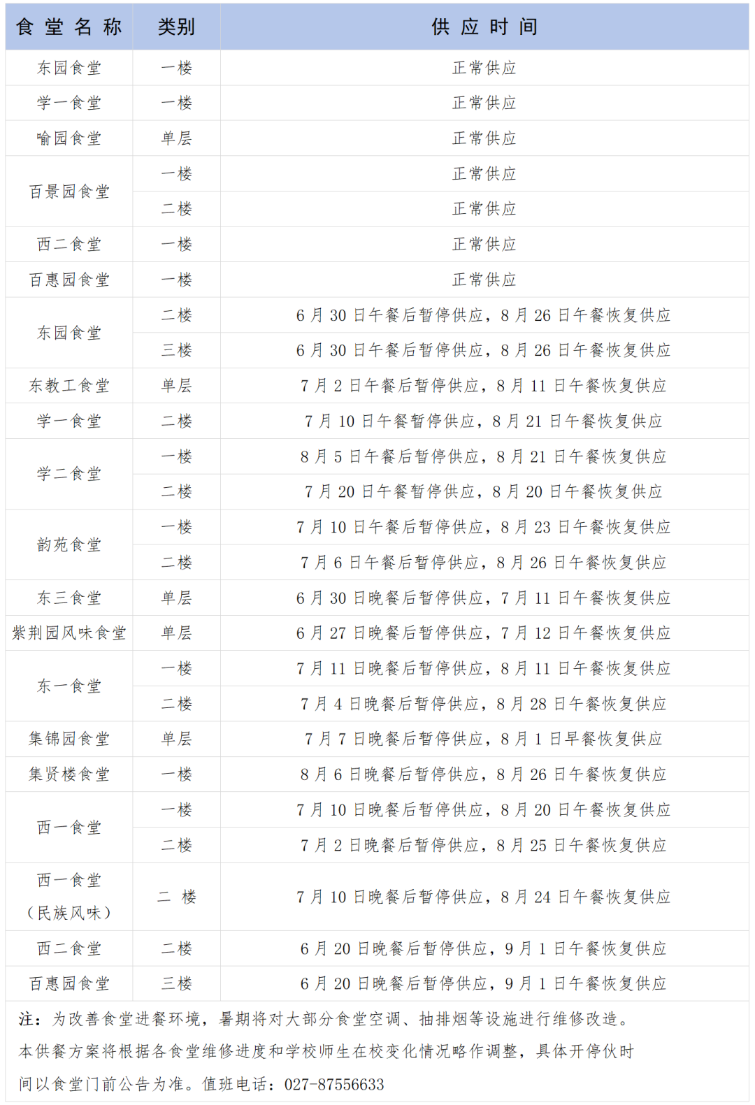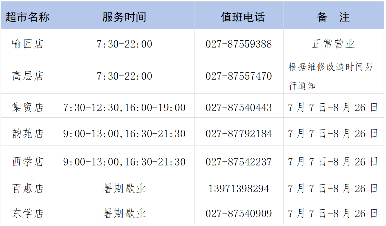 如有需要,请联系电话:027-87542740或19913185818,校园巴士将根据留校员工情况酌情调整营运时间及班次。
