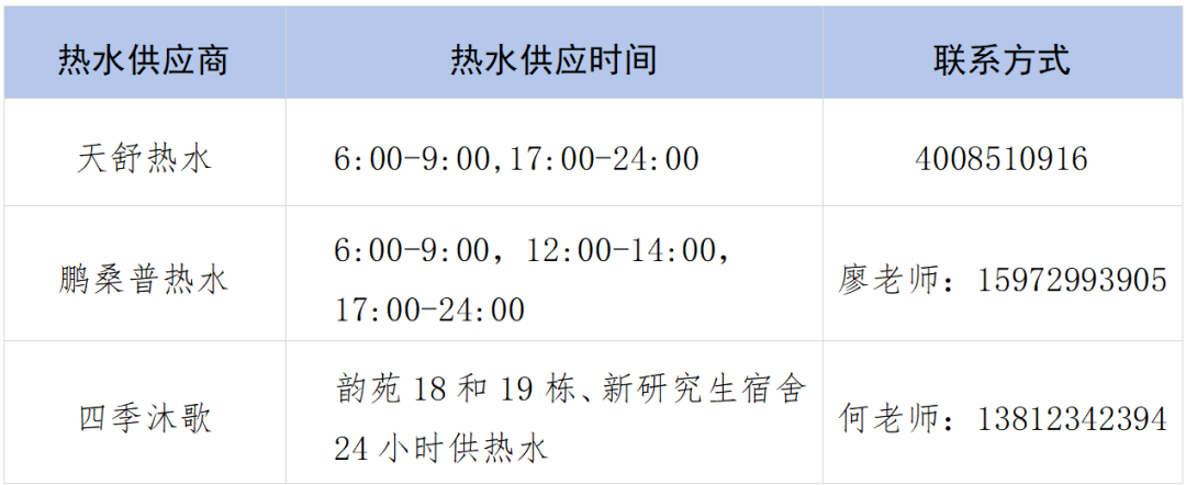2. 员工宿舍洗浴热水供应时间