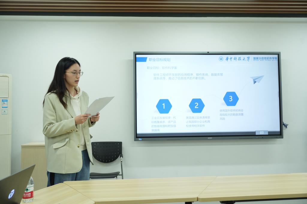 随后,参赛选手进行答辩展示。“就业”赛道选手围绕就业目标、个人能力匹配和未来展望等进行了深入阐述,“成长”赛道选手就自身职业目标、成长经历、学业成果等进行了展示。