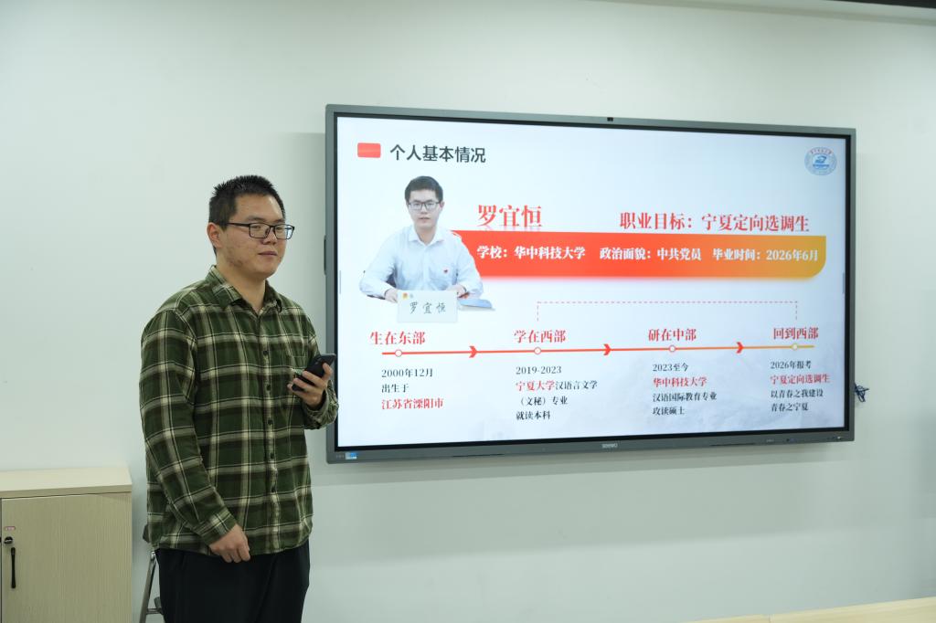 本次职业规划大赛分设“成长”与“就业”两大赛道。罗宜恒为参赛选手分享了“就业”赛道的比赛经验。他立志扎根基层,分享了逐梦基层选调生的切身经历,在实践中锻炼了“提笔能写、坐下能谋、起身能干”的能力。他对比赛现场的完美再现给参赛选手树立了典范,助力他们清晰思路,持续精进。