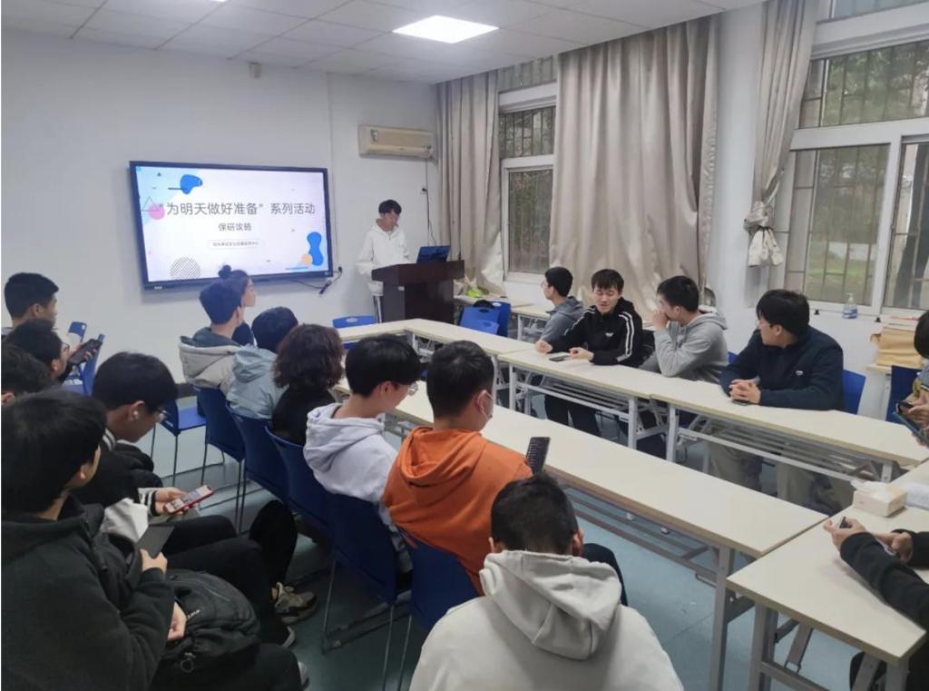 最后,考研篇“一研为定”中,辅导员马冰茜介绍了历年来学长们的考研成果与去向,段磊、欧阳赟、李郅烨学长们介绍了备考的重点和技巧,并强调了坚持规划、合理安排时间和保持坚持的决心。他们还提醒我们要善于总结经验,不断调整学习方法,以便在考试中取得优异的成绩。