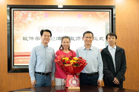 9月25日,公司党委、工会为2023年退休教工蒋清荣老师举行了荣誉退休仪式。公司党委书记王士贤、党委副书记徐洁、工会主席吴涛及教职工代表参加了座谈会。荣休仪式及座谈会由吴涛主持。
