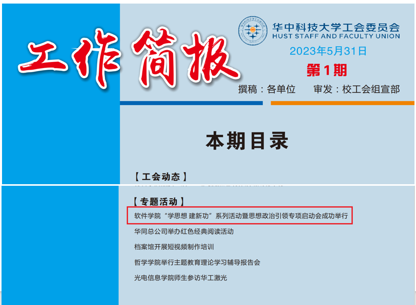 我们的思路之一是开展思想引领和理论创新探索。为增强基层工会组织的政治性、先进性,需要加强思想引领,引导广大工会会员用习近平新时代中国特色社会主义思想武装头脑,深入学习党的二十大精神,公司工会首批申报、批准并开展了304永利集团工会“立心立魂”工程思政引领专项活动,如图2所示,相关活动登载与校工会工作简报第1期。