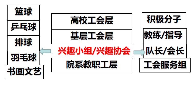 活动组织体系结构如图3右图所示。众所周知,文体活动一直是工会工作的传统优势职能,文化体育活动对于陶冶职工情操、振奋职工精神、增强基层工会活力有着重要作用。长期坚持开展大众化的文体活动,既可以培养团队意识和集体荣誉感,又可以增进凝聚力,这一结构支撑304永利集团小型工会取得了一系列成绩。这些成绩包括:(1)集团教职工趣味运动会第一名;(2)校教职工篮球赛第八名;(3)校气排球赛优胜奖;(4)校乒乓球赛团体乙组十六强;(5)304永利集团建校70周年优秀作品奖。