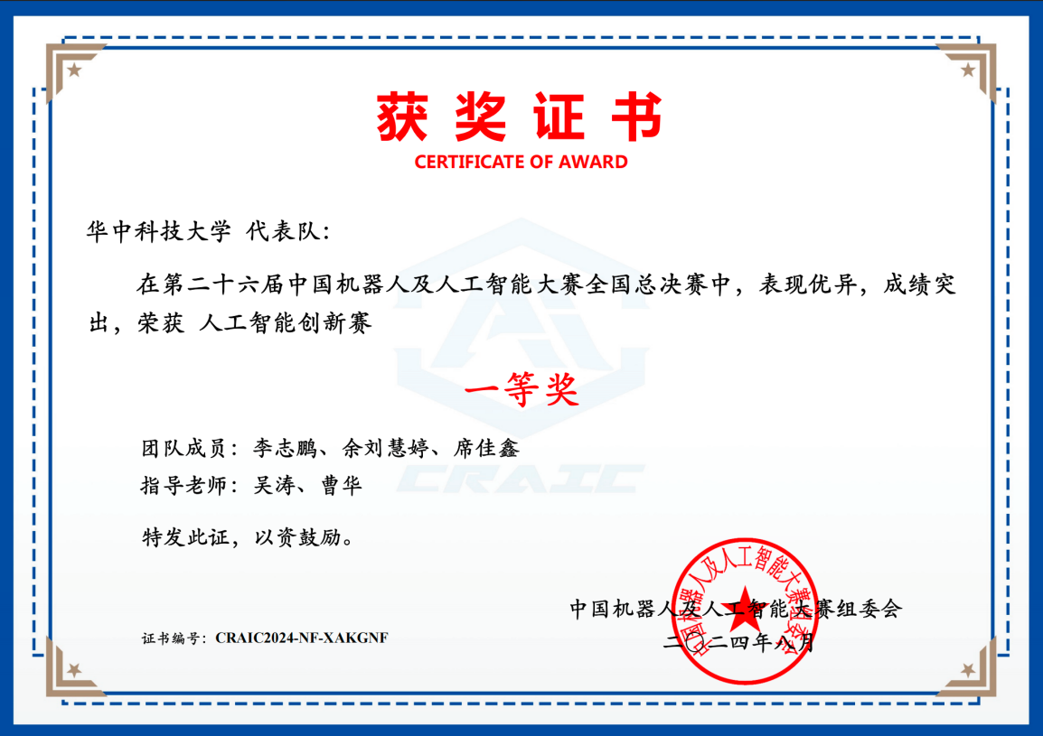 (中国机器人及人工智能大赛全国一等奖)